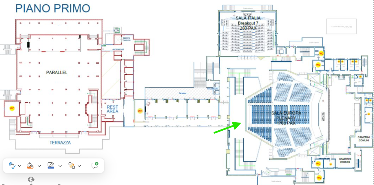 In addition to the above, in Sala Europa, it will be possible to digitally brand the PiP screen (for dimensions, please refer to Section: Audio-Visual (AV) Equipment)
